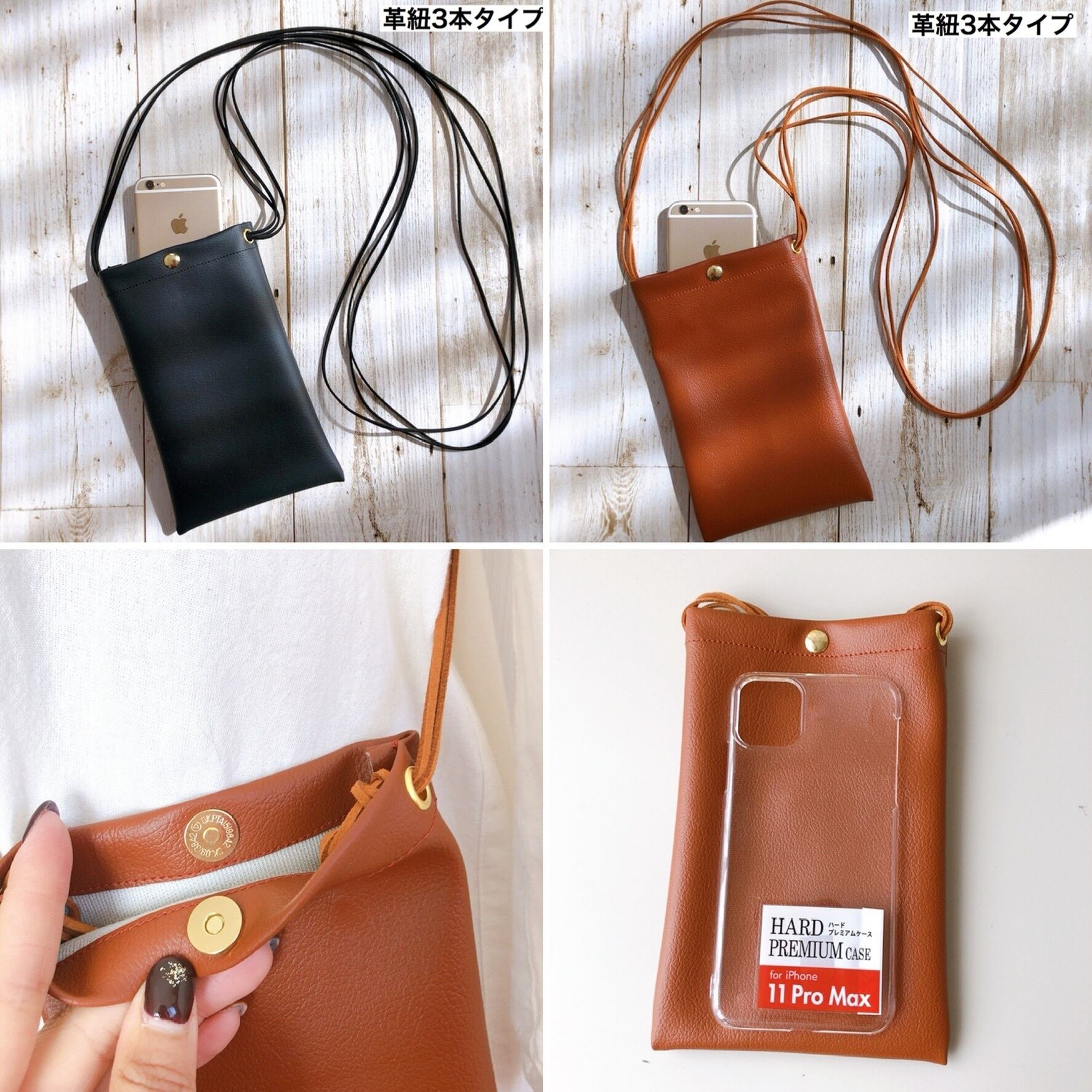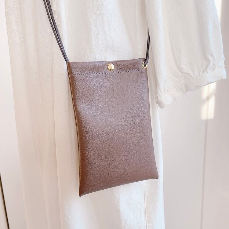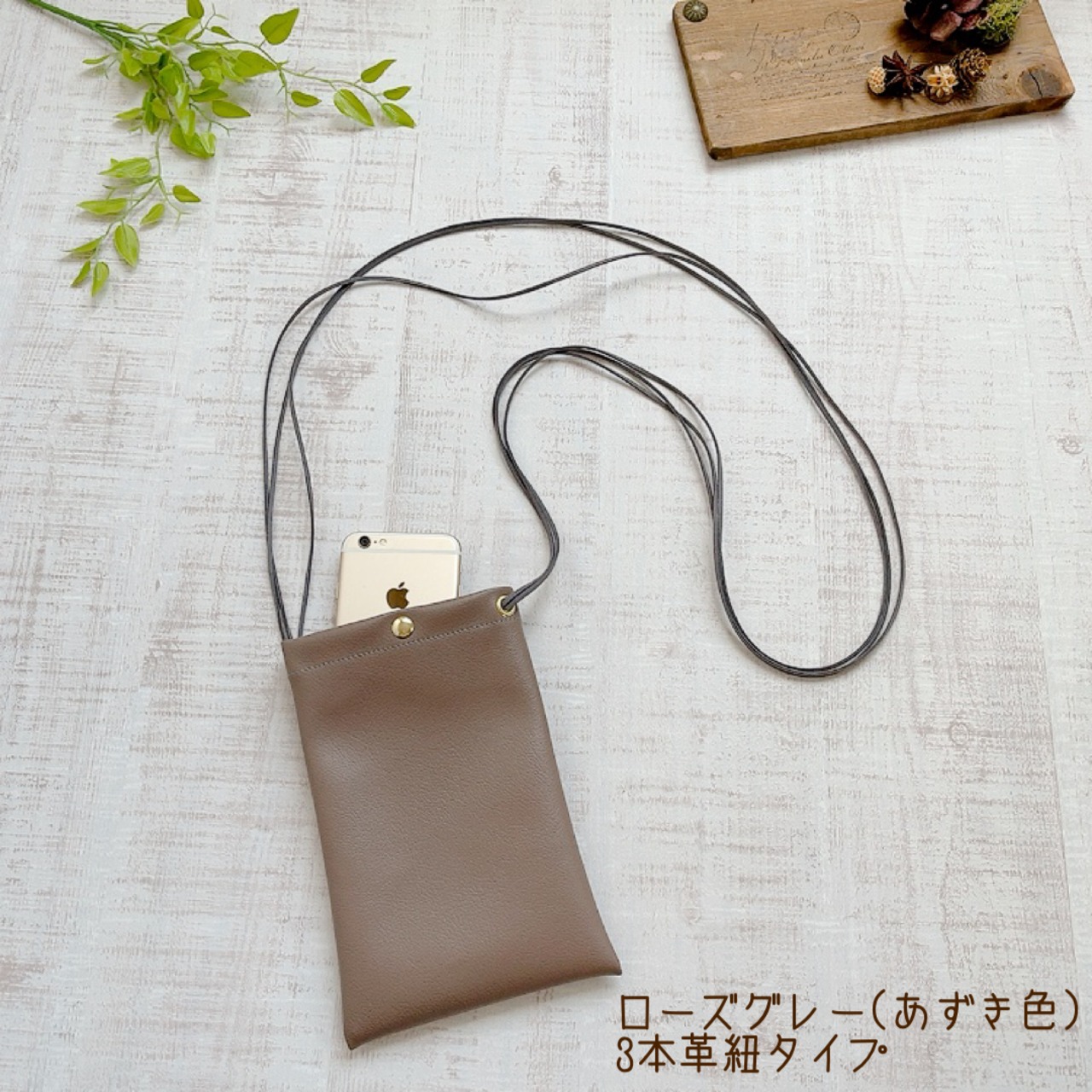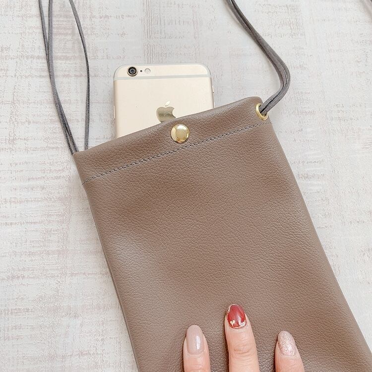 「シンプル スマホポシェット」ローズグレー(あずき色)