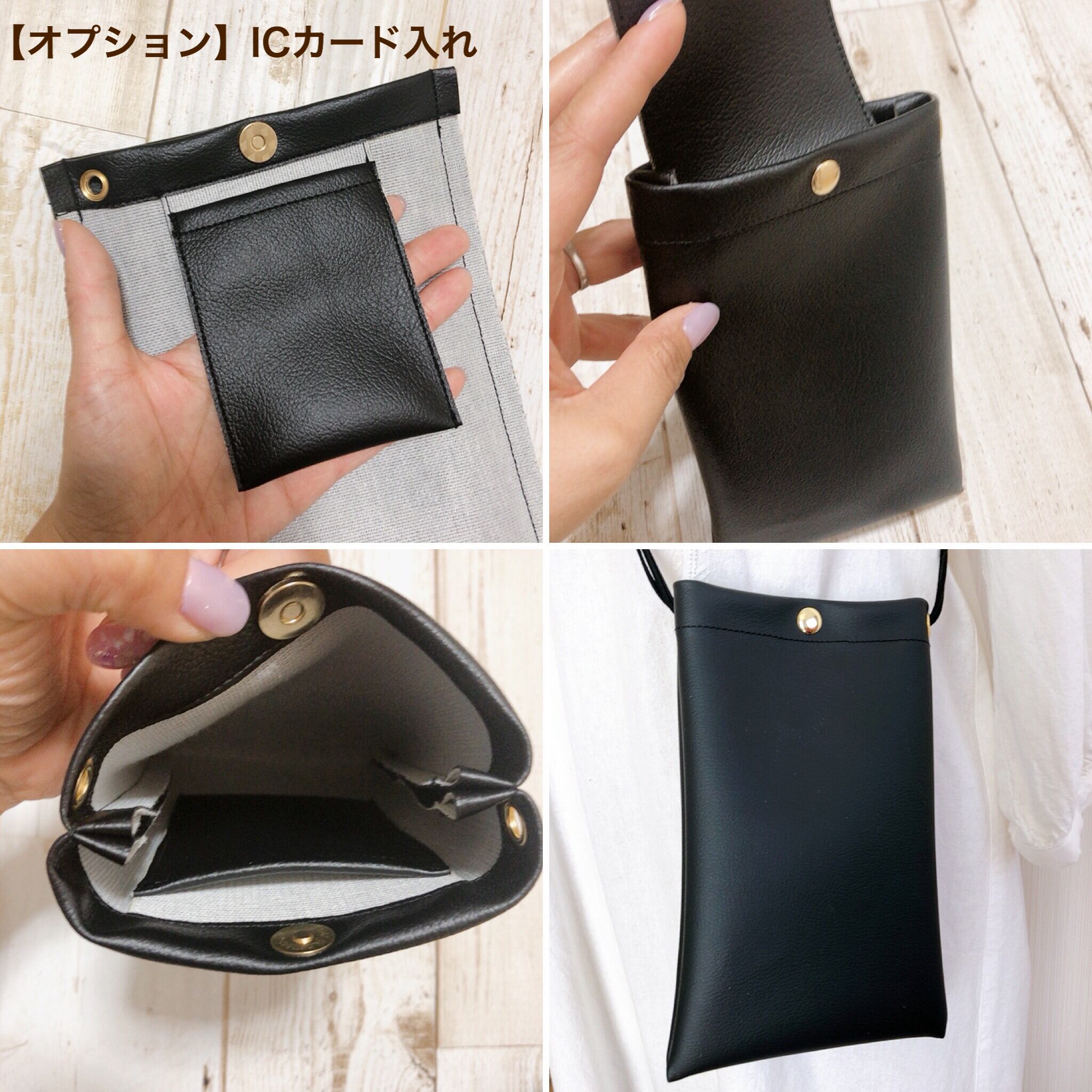 軽くて、しっかりした生地の合皮を使用しています。(重さ約65g)