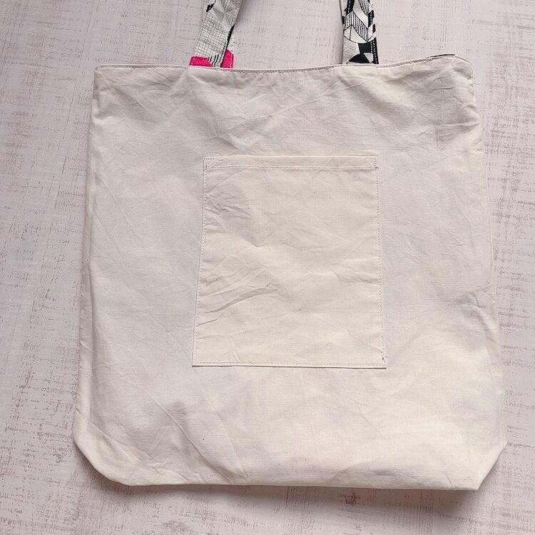 持ち手と表裏切り替え部分には接着芯を貼ってしっかりさせています。
