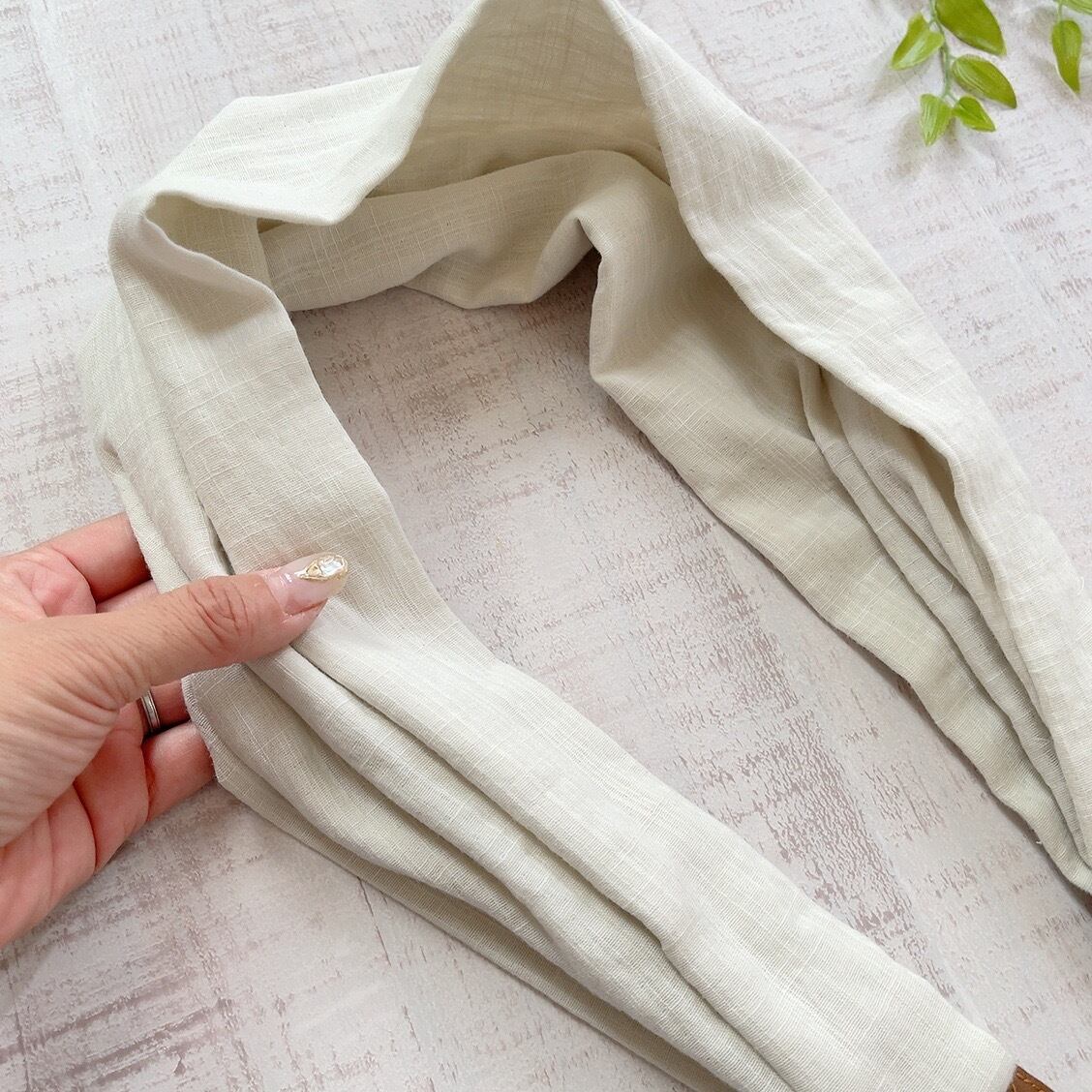 生地部分は生地を半分におり端を縫って輪っかになっております。